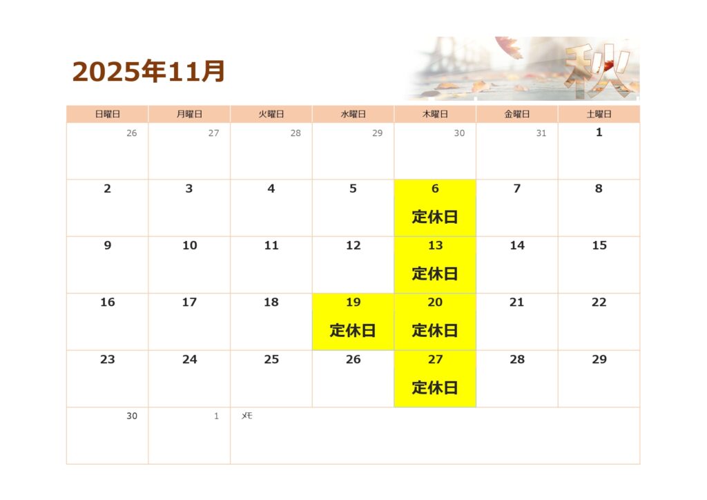 11月 定休日のお知らせ